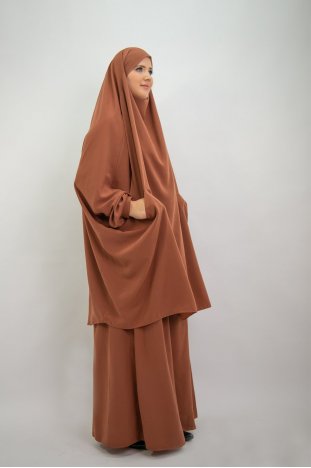 Jilbab 2 pièces sarouel microfibre léger el bassira. The skirt is elasticated at the waist. The jilbab is sewn in a luxury high quality luxury egyptian caviary fabric for maximum coverage.