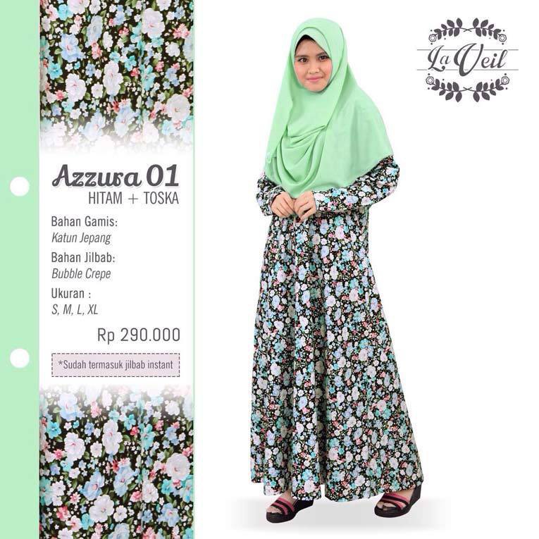 Harga Promo Gamis Jilbab Azzura 01 Hitam Toska By La Veil Baju