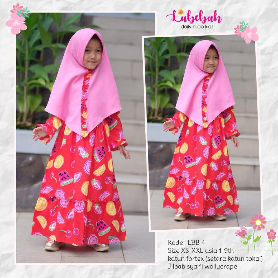 Gamis Anak Labebah Lbb 4 Gamis Merah Jilbab Pink Motif Buah Katun