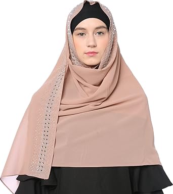 Ababalaya Womens Modest Muslim Islamic Chiffon Rhinestones Solid