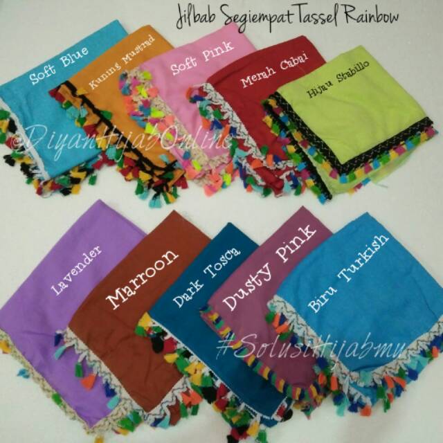 Jilbab Segiempat Tassel Rainbow Raya Allshop