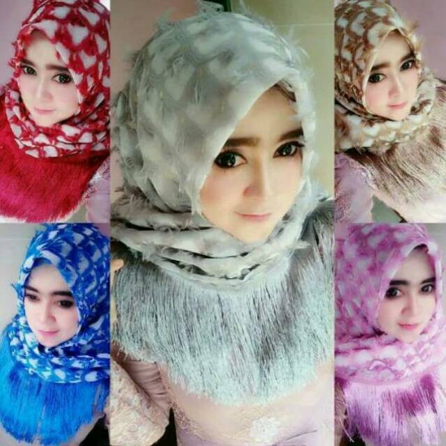 Jual Terlaris Jilbab Segi Empat Rubiah Rumbai Mermaid Bulu Angsa